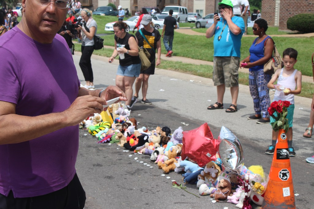 One year after the tragic killing of unarmed Mike Brown near his home in Ferguson, hundreds showed up to Canfield Gardens pay tribute. Here are some photos I took.. Its the first time I ever used the camera..In fact I got the camera just so I could document what was going on in this troubled part of the country..
