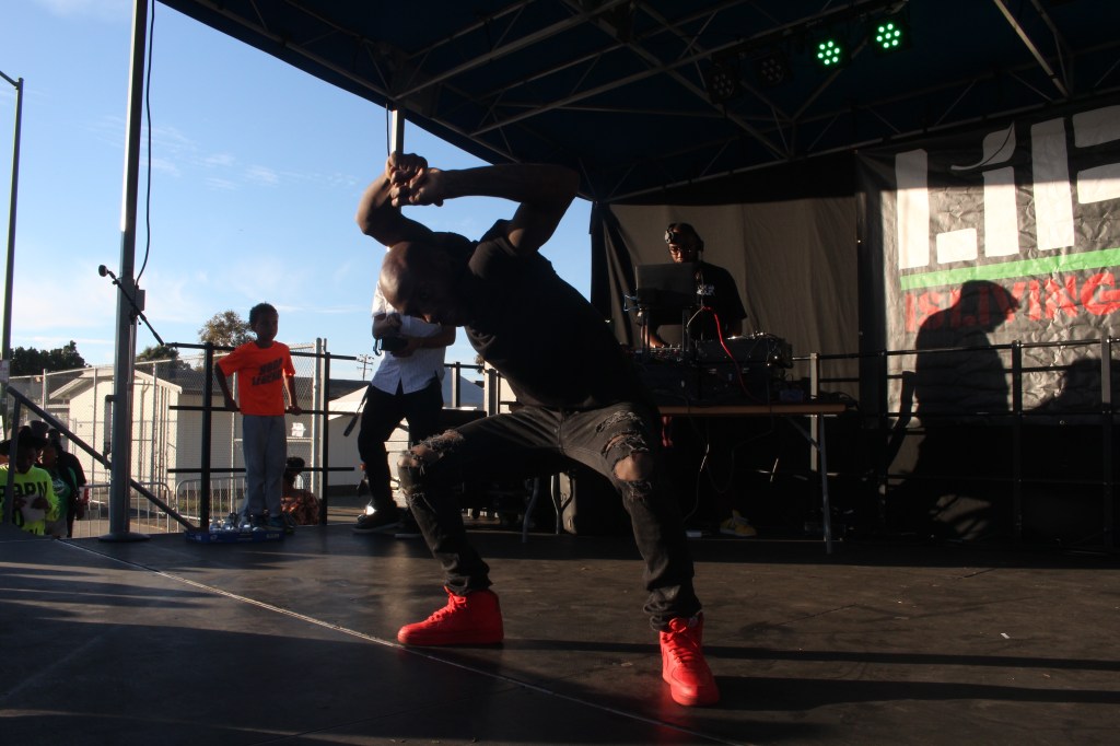 Sunday October 10th 2015 Oakland: Below are pictures of Bones the Machine who hails from Brooklyn. He went up against Kidd Strobe from Oakland at the Life is Living Festival held at Lil Bobby Hutton/ Defermary Park. Bones was wicked with his moves..Shout out to Yak Films for putting this together.